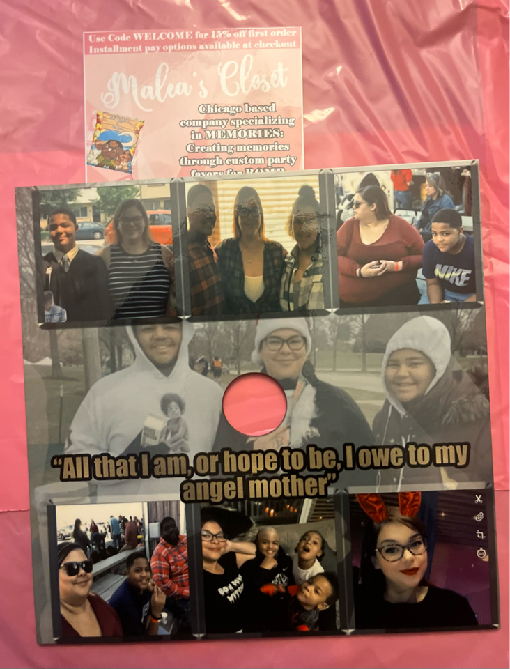 can be customized with up to 3 pictures, words or sayings.